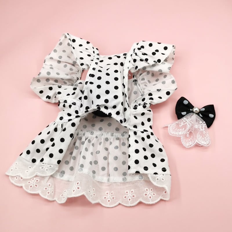 大きなヒラヒラのお袖が印象的な水玉模様のワンピース。