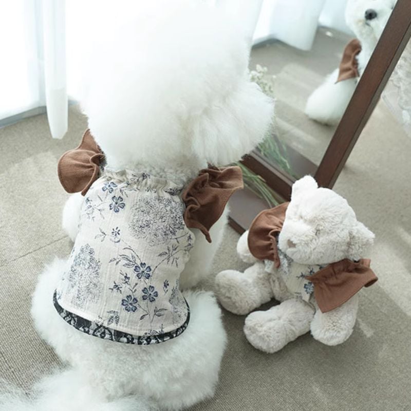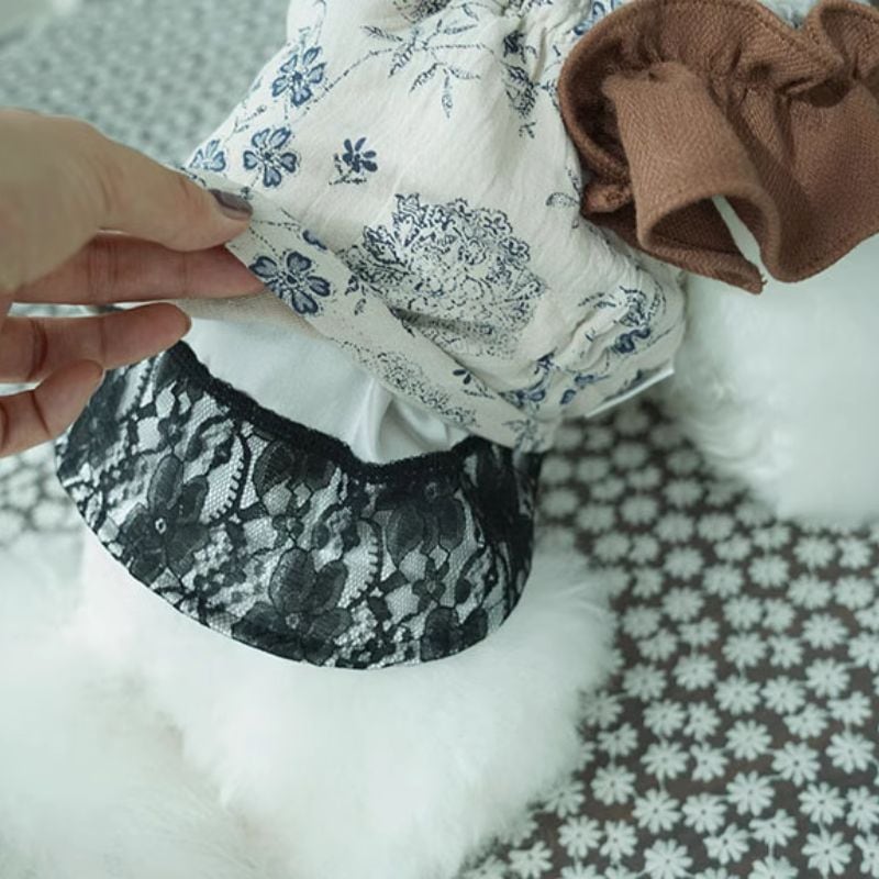 ブラウンフリル袖の大人ワンピース 犬服 00168