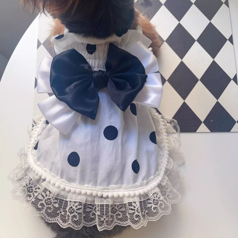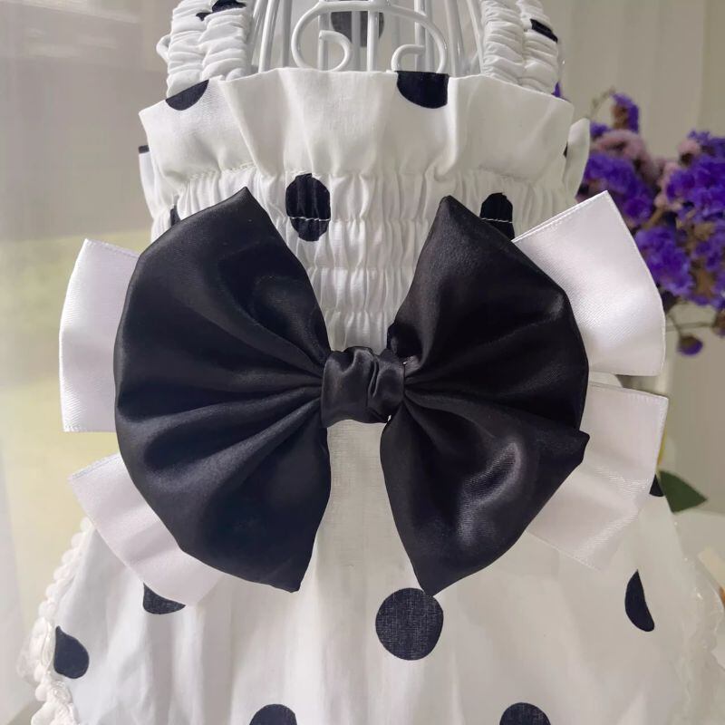 大きめドットの生地を使ったガーリーでシックなデザイン。