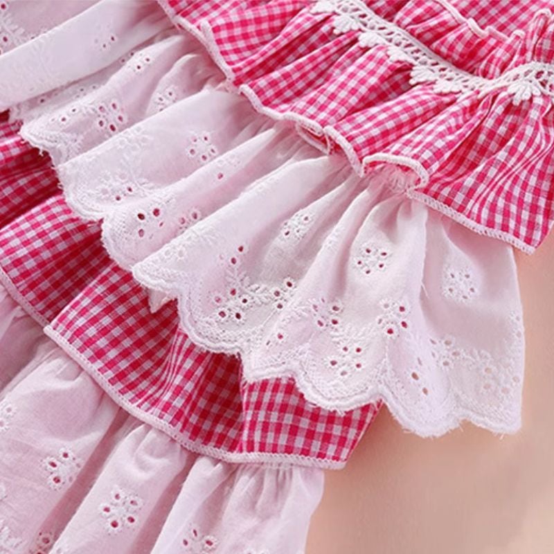 フリフリなレースをたっぷり使ったチェック&レースのガーリーワンピース。