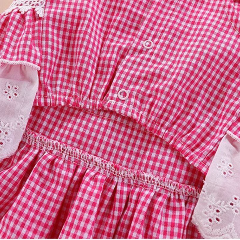 チェック&レースのガーリーワンピース 犬服猫服 00323