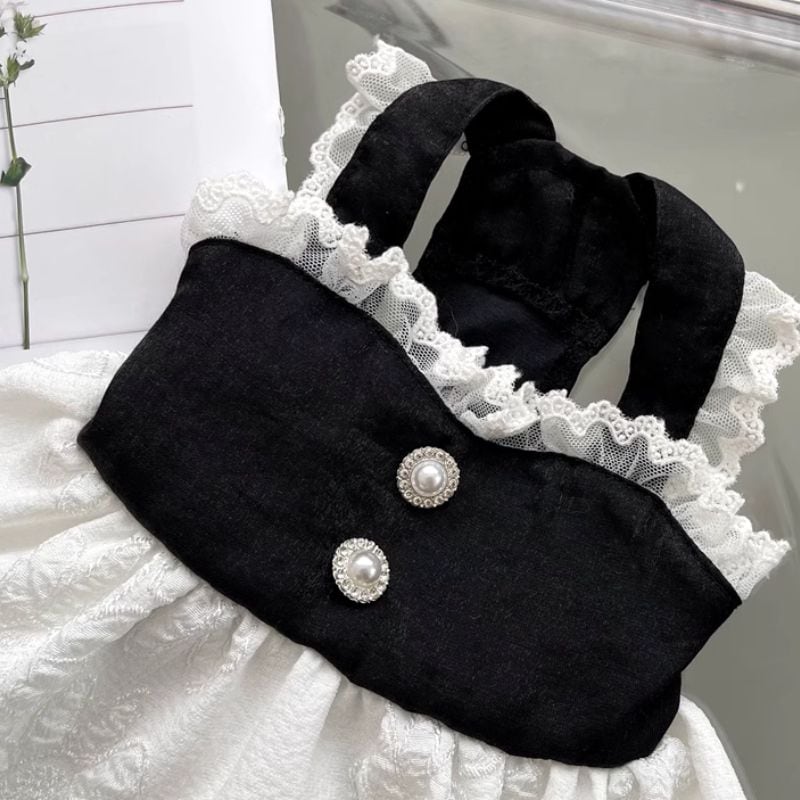 白いレースリボンとバルーンフラワースカートが、ワンちゃんを一層可愛く引き立てます。