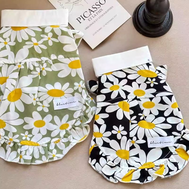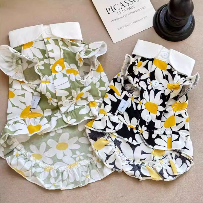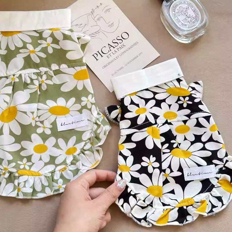 襟付きデイジー柄ワンピース 犬服 00362
