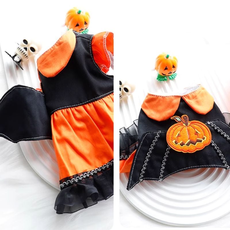 オレンジ色に、黒いオーガンジーの裾がアクセントになり、ワンちゃんをハロウィンの主役にします!