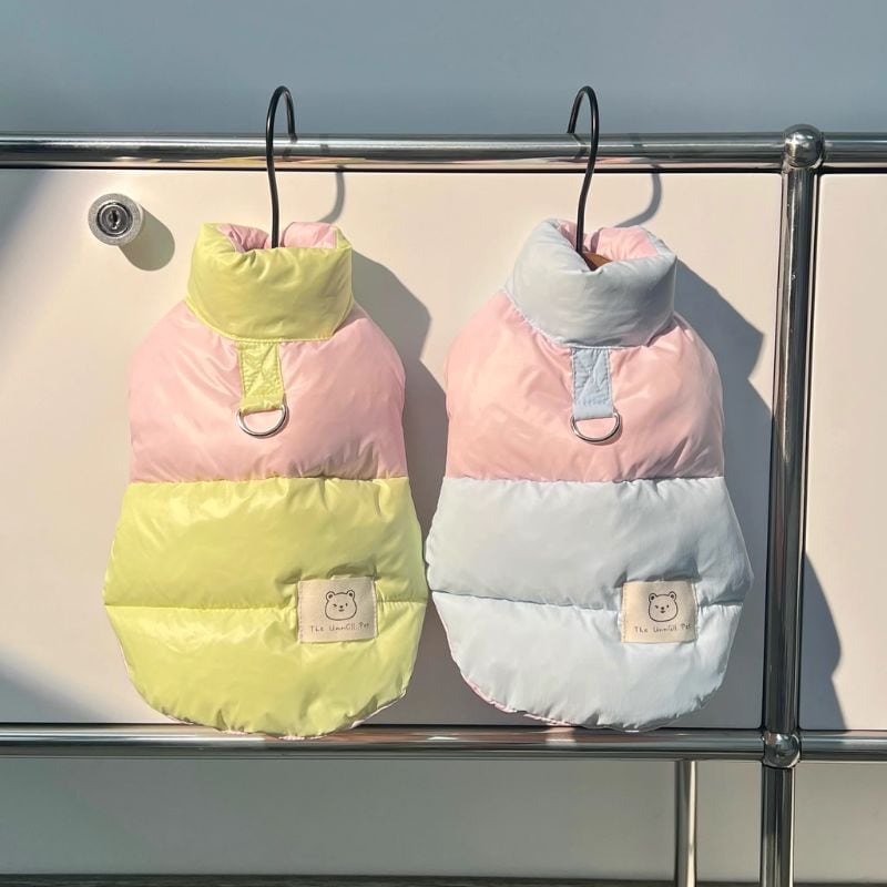 裾にはクマさんのタグが付いていて、背中にはリード用フックが便利なデザイン。