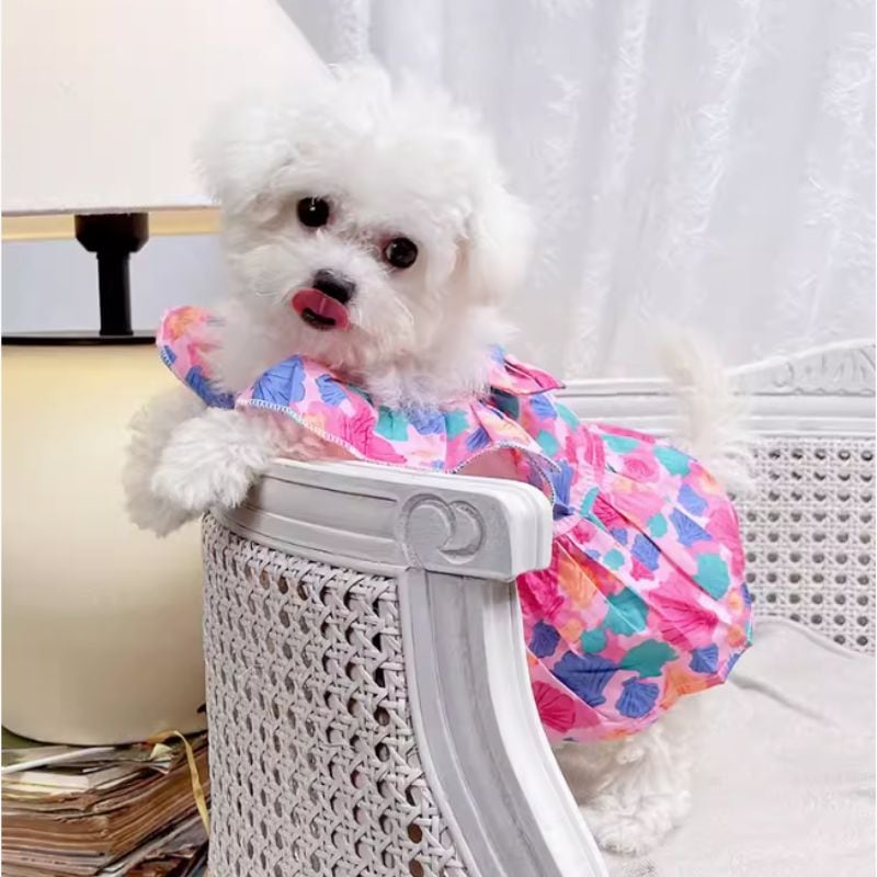シェル柄コーラルピンクのワンピース 犬服 00403