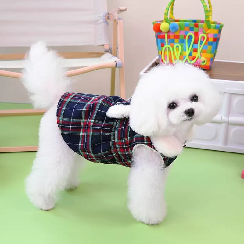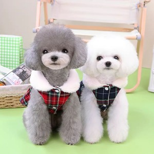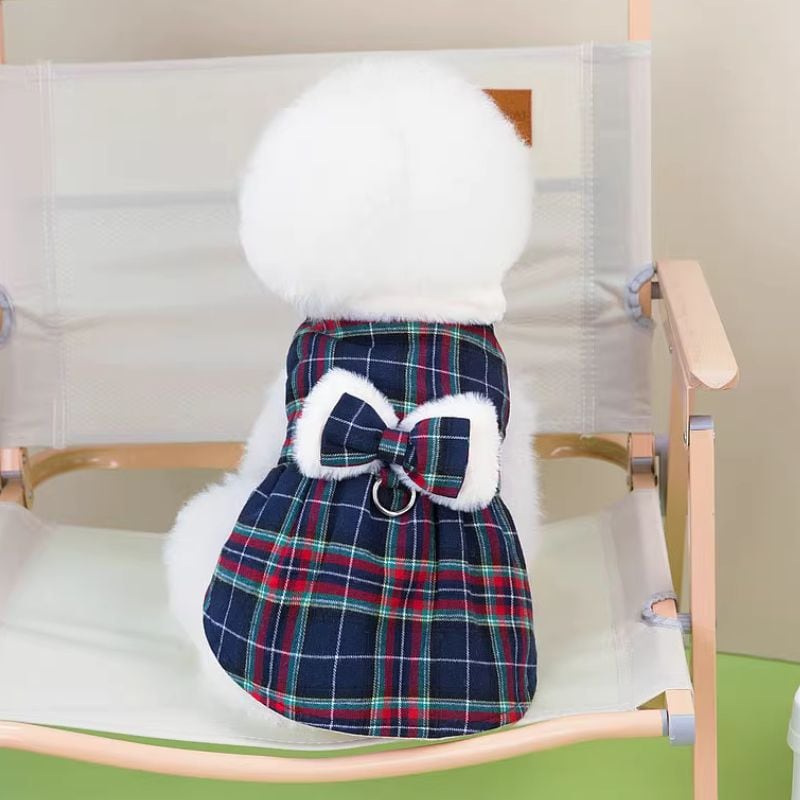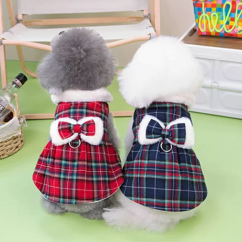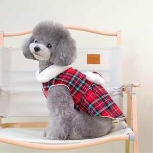 ボア付タータンチェックのワンピース 犬服 00408