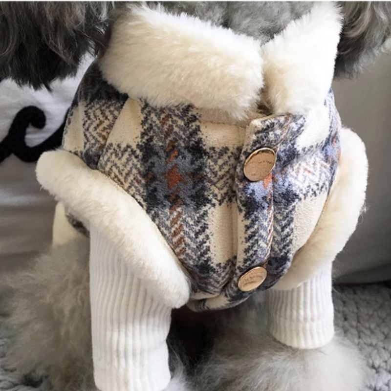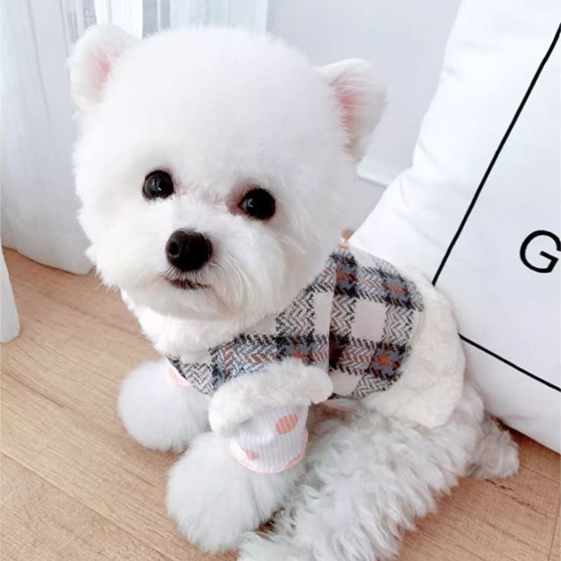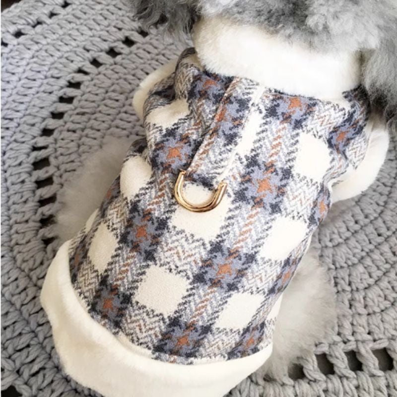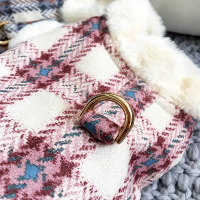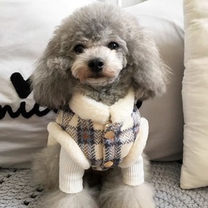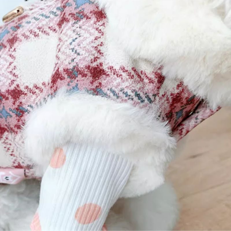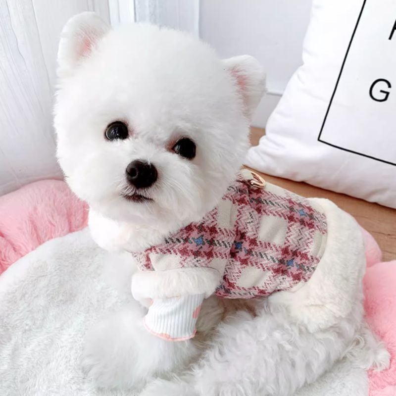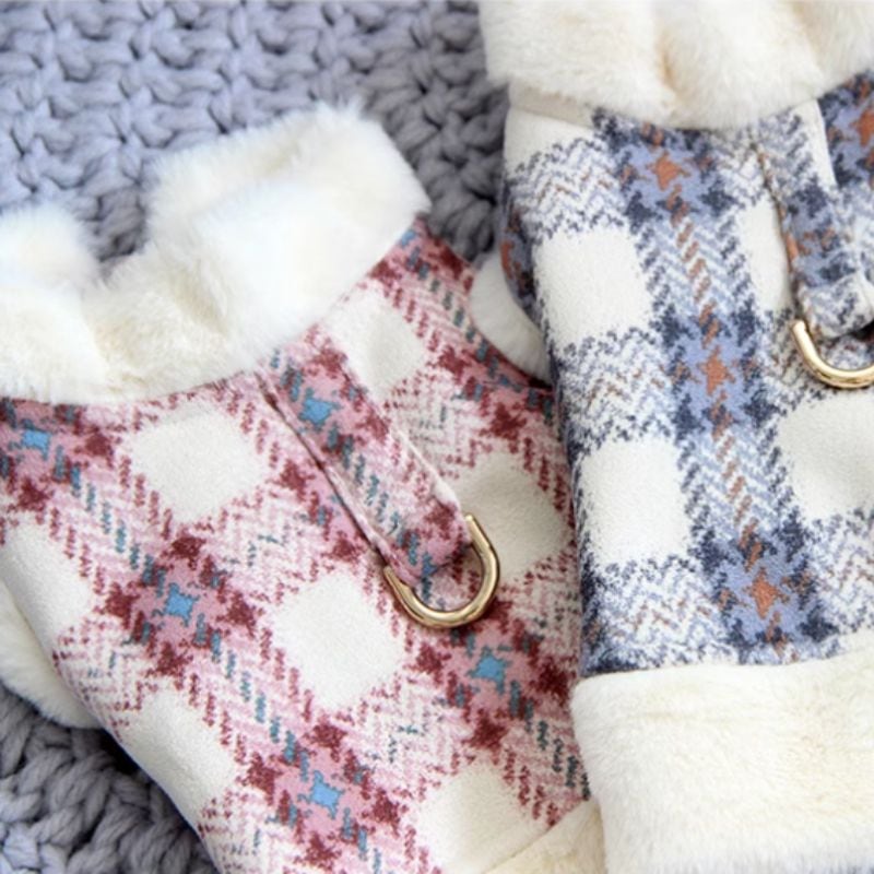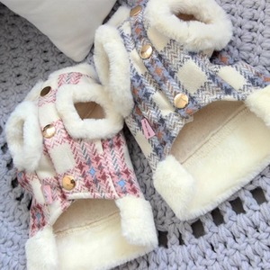 ぬくぬくボア付チェックのベスト 犬服 00409