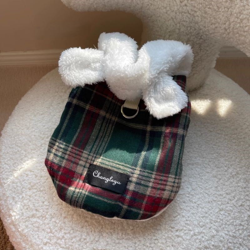 背中にはリード用フックとタグが付いていて、機能性も備えています。