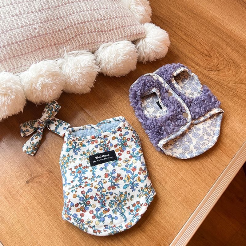 花柄とループボアのリバーシブルアウター 犬服 00501