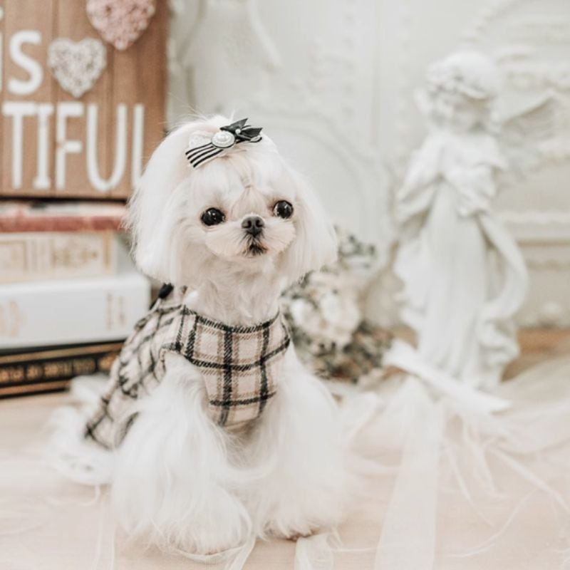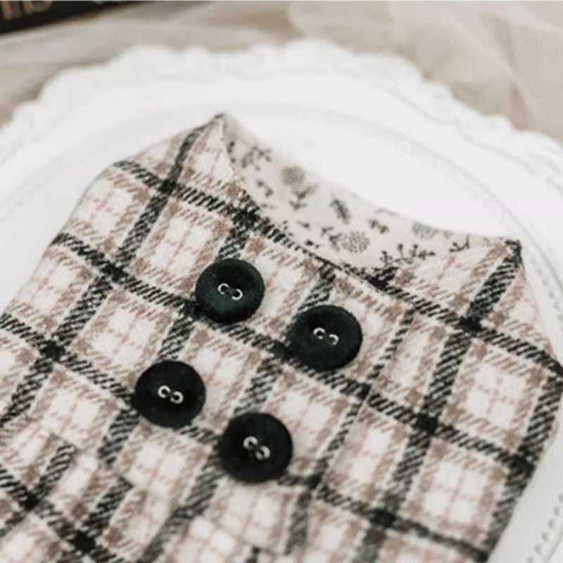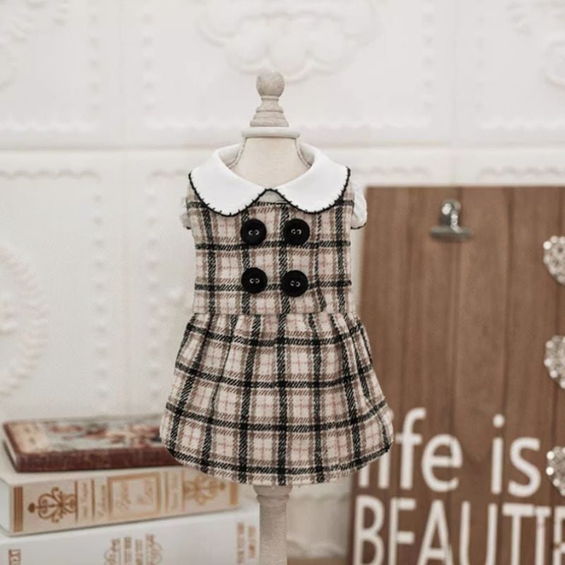 ランダムチェックのエレガントなワンピース 犬服 00525