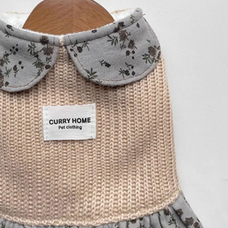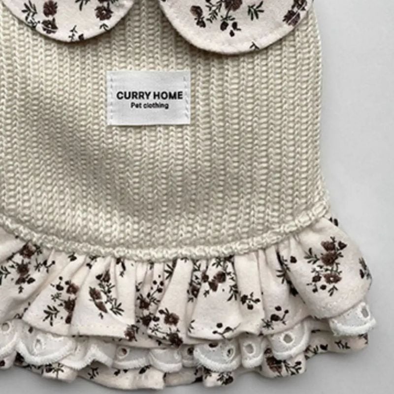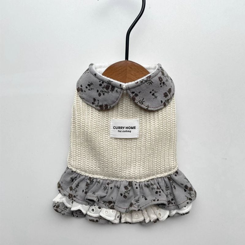 小花柄ティアードスカートのニットワンピース 犬服 00528