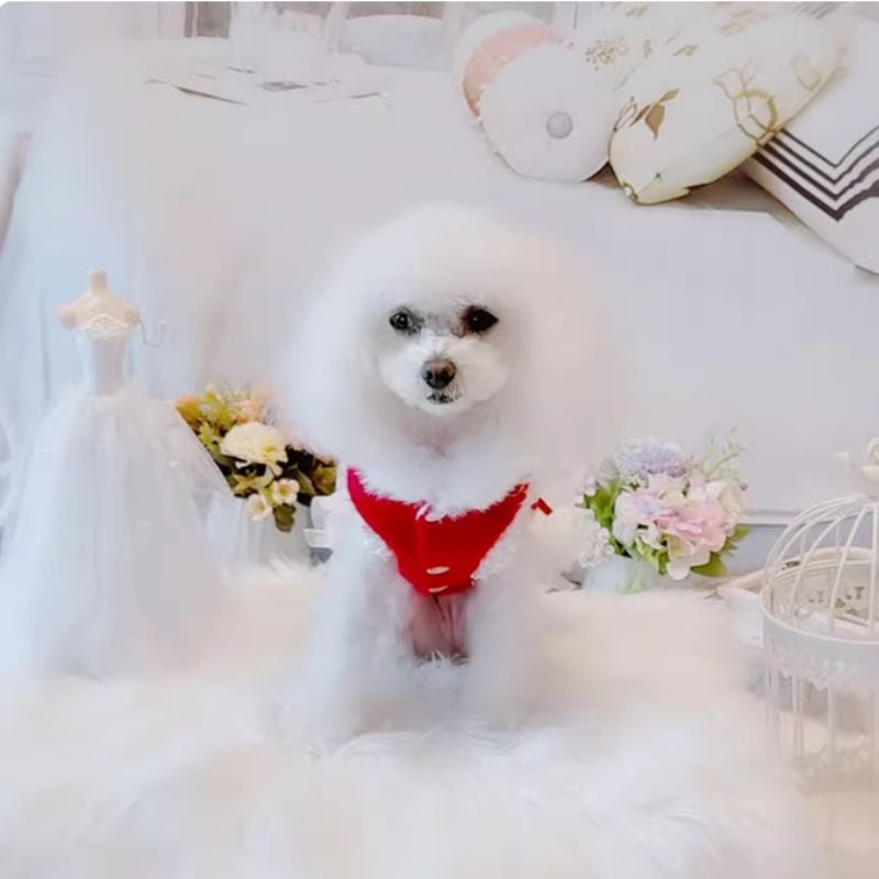 【海外ハンドメイド】フェイクファー付ニットのドレス 犬服 00544