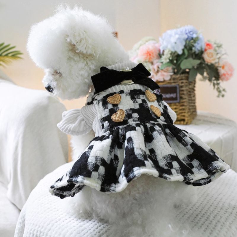 ハートの金ボタン付ギンガムチェックのワンピース 【犬服】 00548