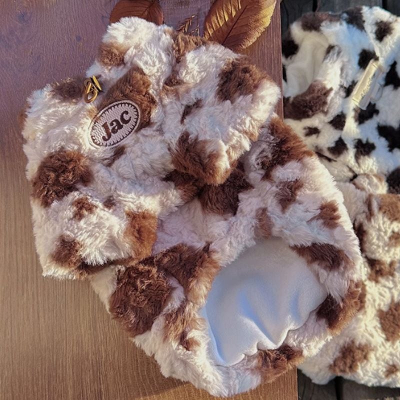 ホルスタイン柄ふわもこボアのトップス 犬服 00555
