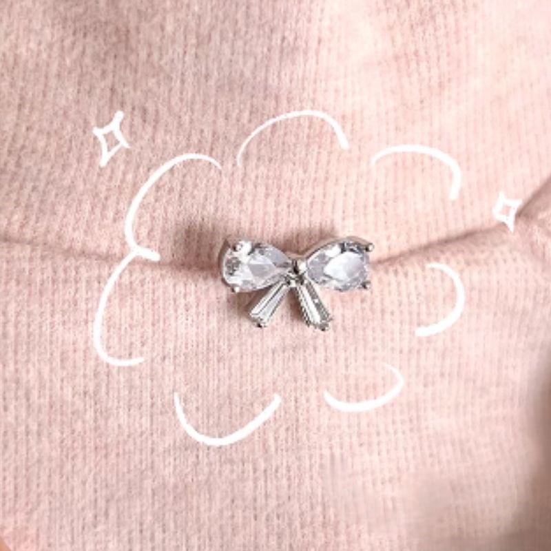 袖口にはスカラップレースがあしらわれ、首元にはジルコンのリボン型ピンが輝きを添えます。