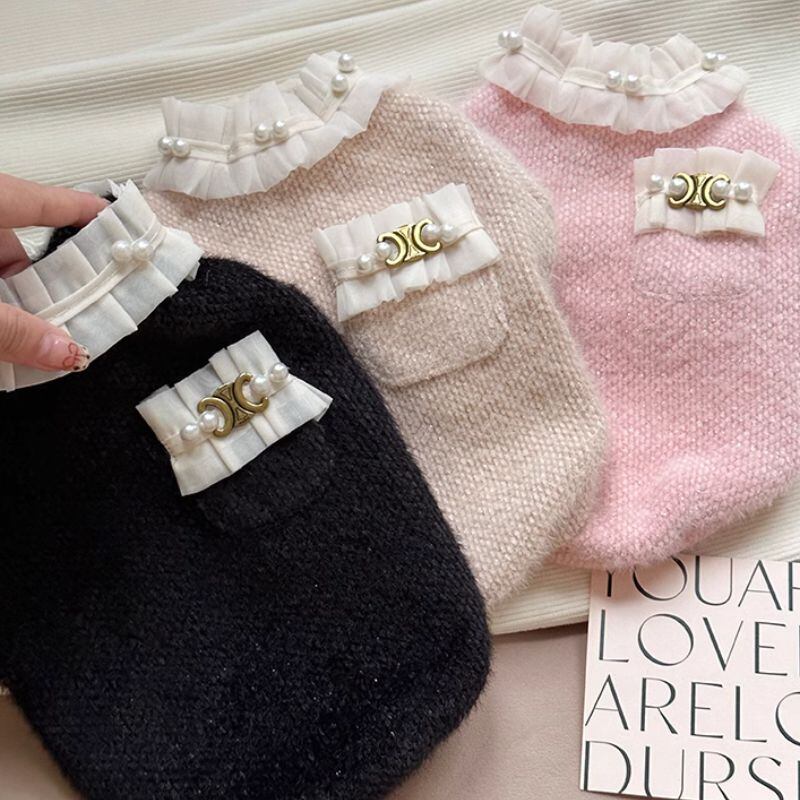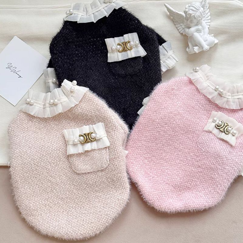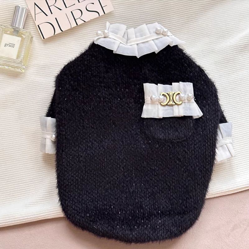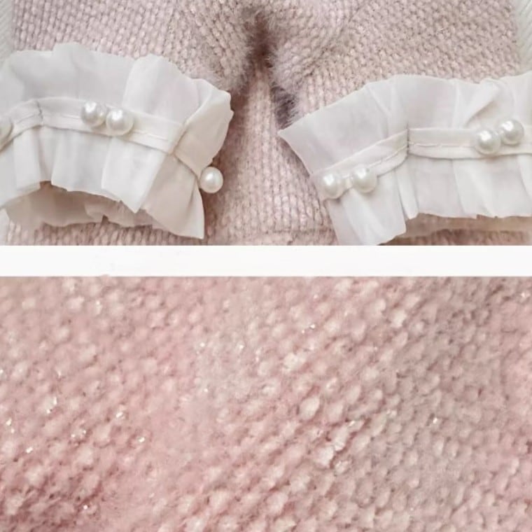 襟と袖口のパール風ビーズが留められたシフォンレースが華やかさを添えます。