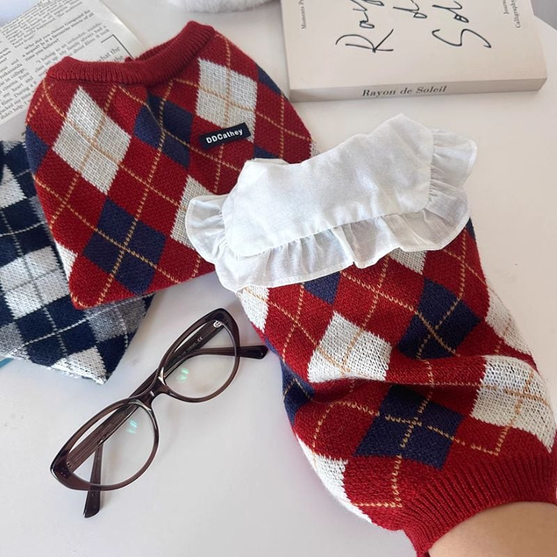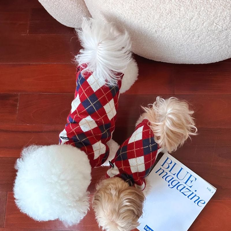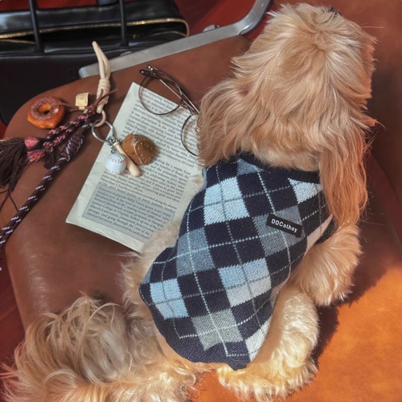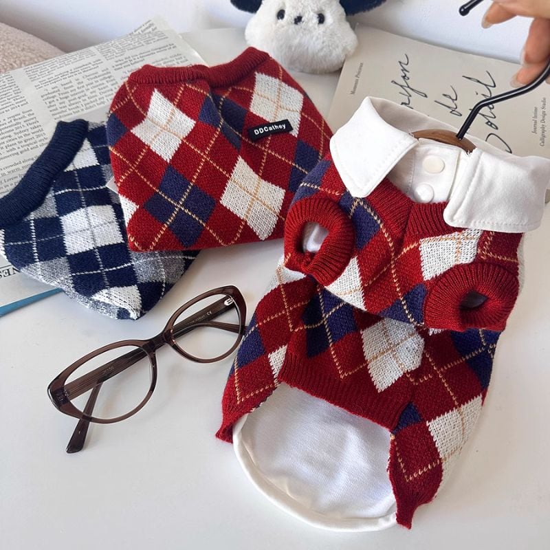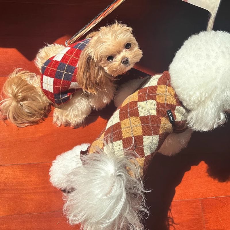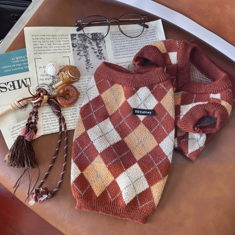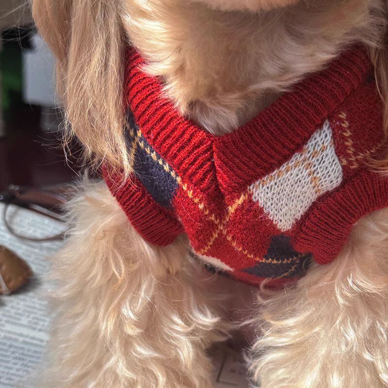 アーガイル柄ニットベスト 犬服 00595