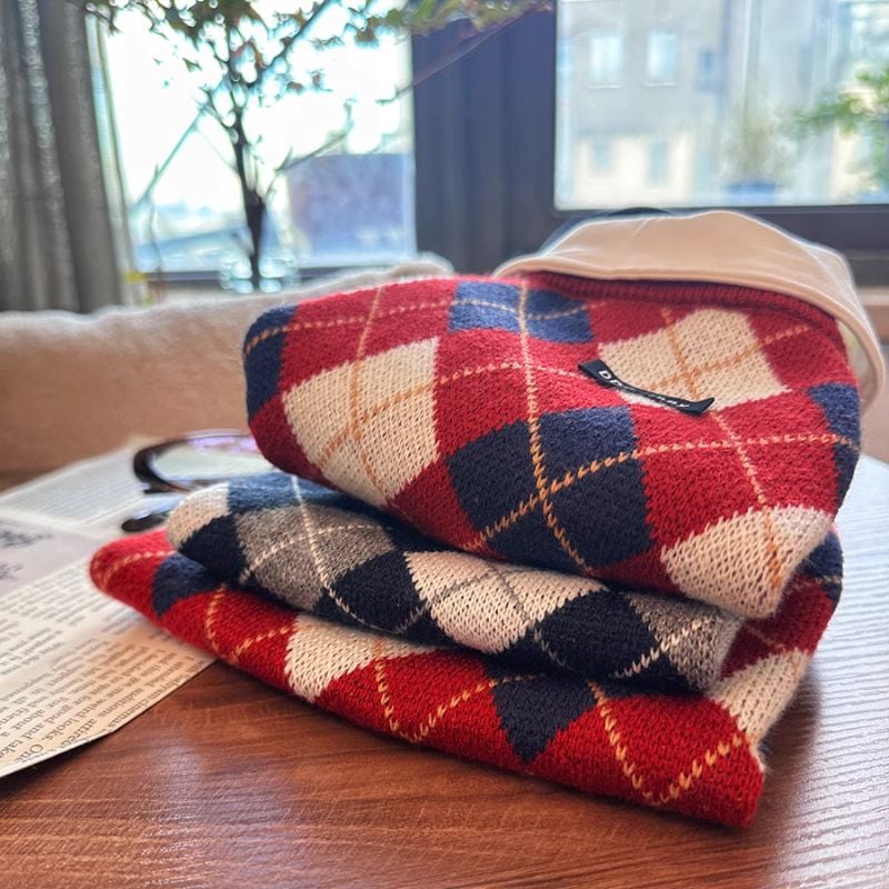 アーガイル柄のニットのベスト。