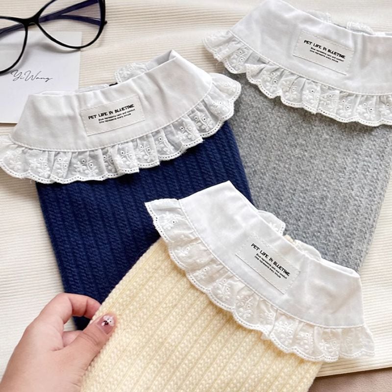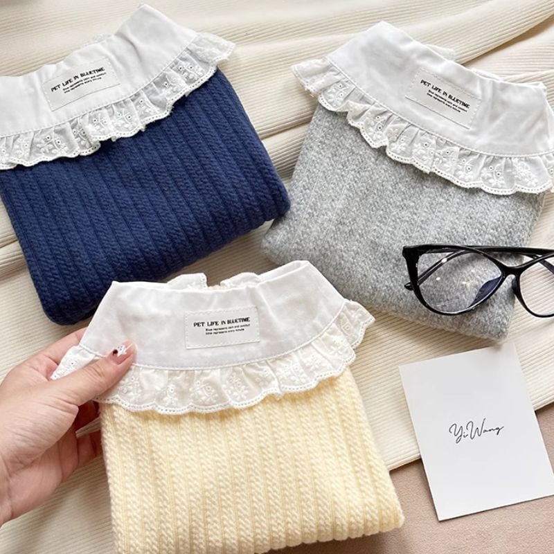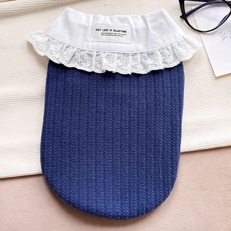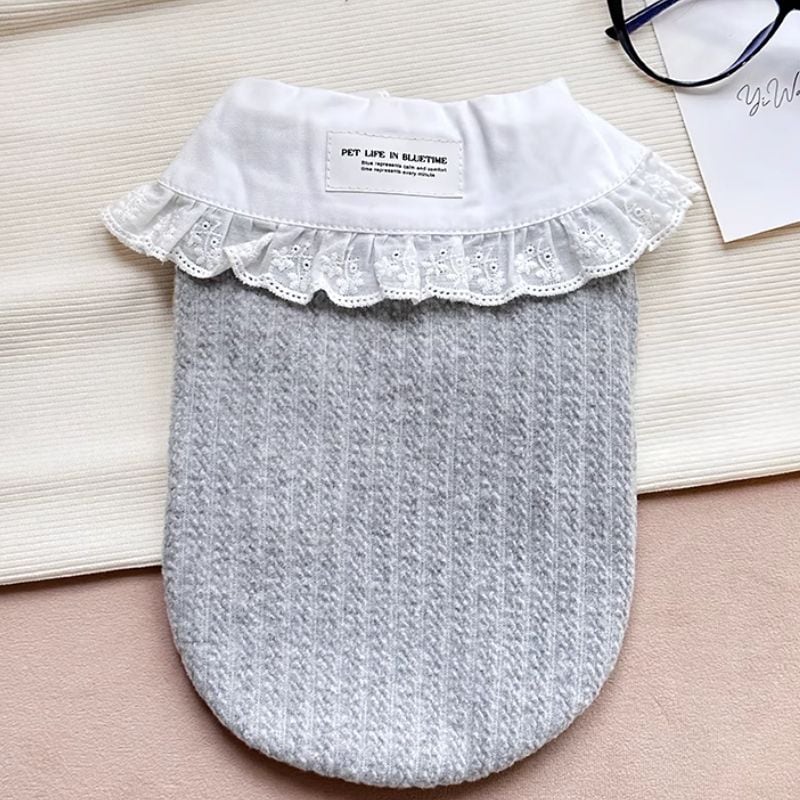 ラウンドカラーのアイレットレースが繊細なアクセントを添え、