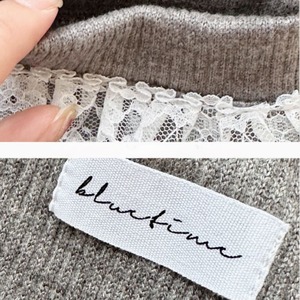 上品なハイネックにレースが施され、首元の黒いリボンがアクセント。