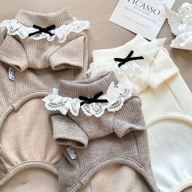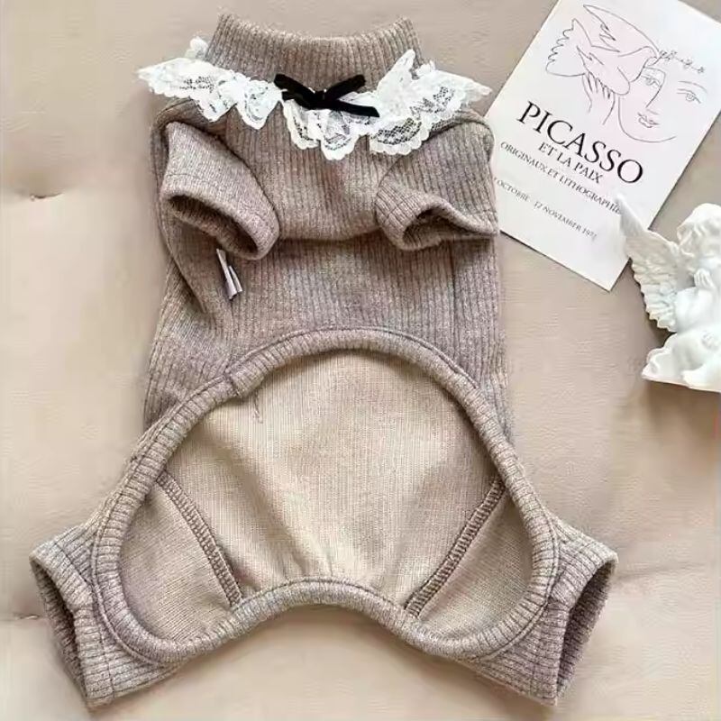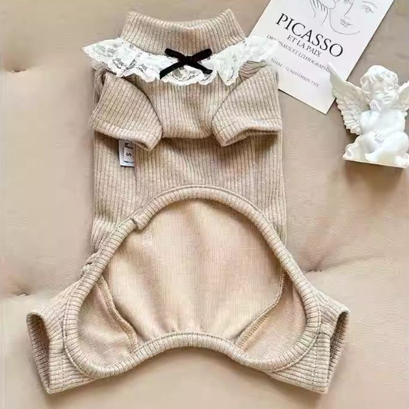 レース付ハイネックのロンパース 犬服 00604