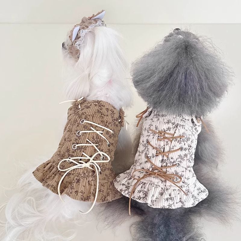 背中は合皮の紐でレースアップ仕様、ストラップ部分の紐リボンが愛らしさをプラス。