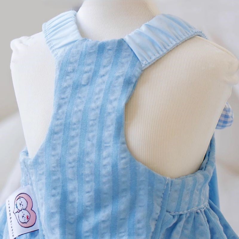 柔らかなサッカー生地で仕立てたサスペンダーワンピース。