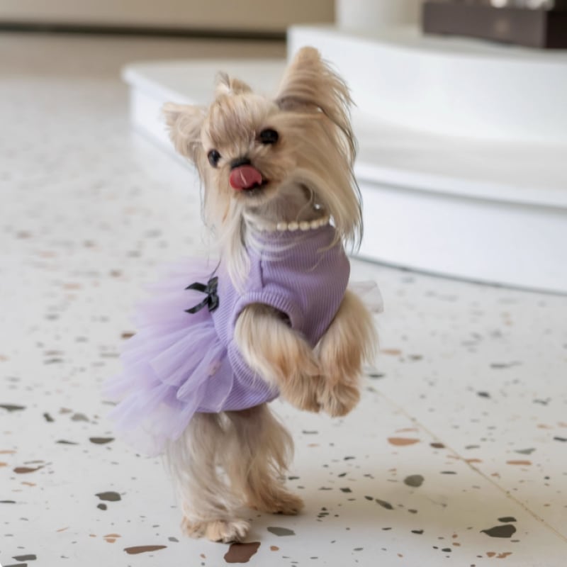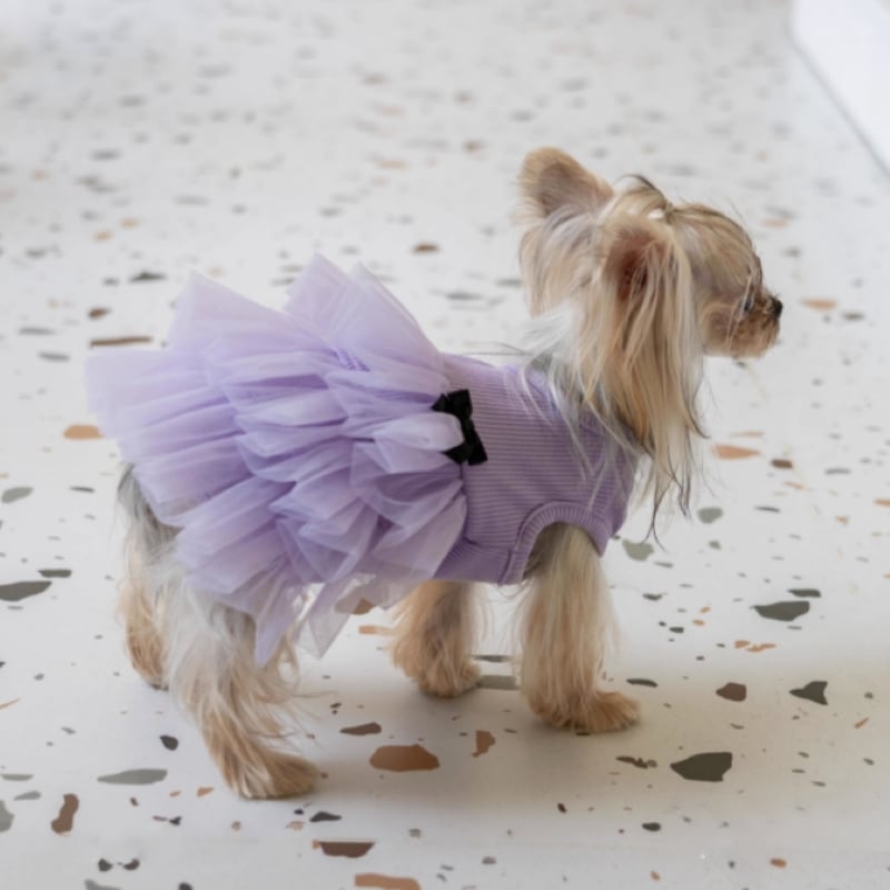 ラベンダーのチュールスカートドレス 犬服【予約】 00598