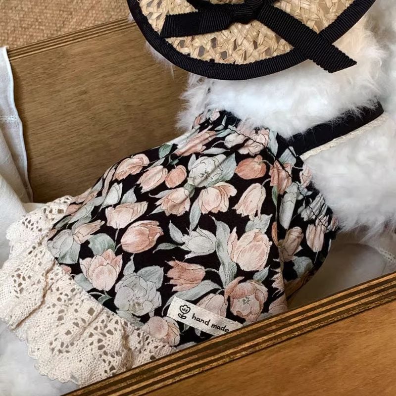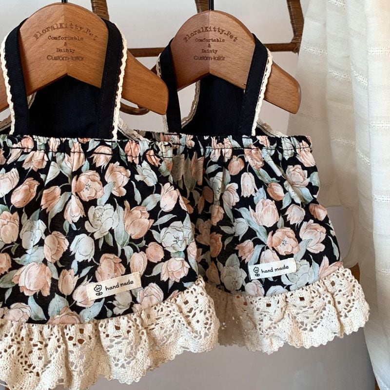 シャーリングウエストで快適な着心地を実現し、裾の繊細なクロシェレースが愛らしさを引き立てます。